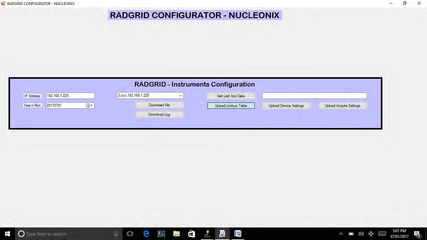 11. Personal Computer with Networking Software RadGrid is a comprehensive and user friendly software that will configure, communicate and continuously monitor various Radiation Monitoring instruments manufactured by Nucleonix using MODBUS RTU protocols. It will optionally update instrument Alarm condition and status in Remote database and Nucleonix Instrument Grid database (Optional).The software runs on Windows 7 Operating system. Parameters that are read from the instruments include Measured value, Preset value, Hardware status like LV supply, EHT status, Counts, Alarm status and other fault diagnostic information. Up to 255 MODBUS RTU instruments (max) can be connected to RadGrid.