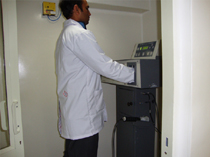 Beta Gamma Hand, Foot and Clothing Monitor : (NXG_HFC1_BG) – is installed at the entrance / exit door of the Hot Lab. This is basically used for checking of the Contamination of Hand, Foot and Clothing of the Personnel working in the Hot Lab to ensure that they are not contaminated and are clean at the end of the shift, before they leave the Medical Cyclotron Facility.