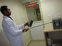 This is essentially a Pancake based Digital Contamination Monitor which can be used for measuring both Beta Contamination in CPS / CPM mode and to measure low gamma dose rates up to 200 mR/hr. This is used essentially to check the Contamination in QC Lab, work areas, floor space, work table, walls etc. in the QC Lab.