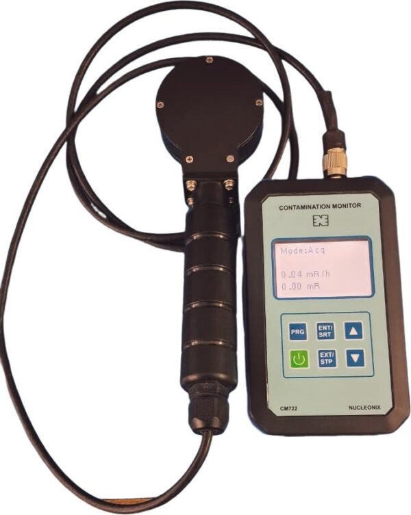 CONTAMINATION MONITOR – Type: CM722IP is a next generation, Compact Series, Contamination Monitor. It is a pancake Detector based, battery powered, hand-held, general purpose Contamination Monitor. This will Serve as a low-level survey meter cum contamination monitor useful in nuclear installations, Radiochemical plants, Reprocessing plants, etc. Additionally, it will be useful in medical, industrial and other installations where radioactive sources are used for a variety of applications, to measure Beta Gamma Contamination.