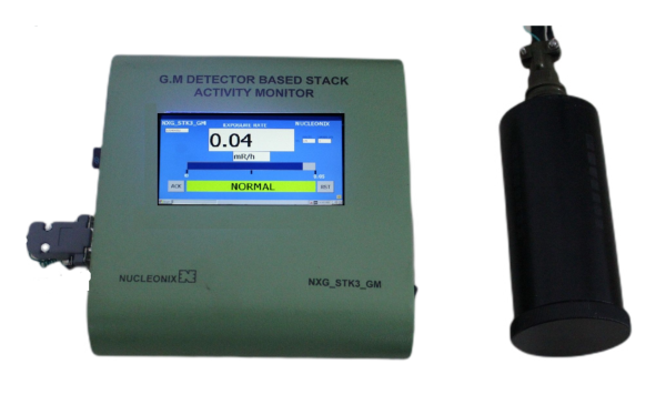 Cyclotron Stack Activity Monitor TYPE: NXG_STK3_GM type designed and offered by ‘Nucleonix Systems’ is primarily meant to measure the radio-activity release levels from the stack into the atmosphere. Cyclotrons are commonly used for production of radioactive isotopes utilized for Positron Emission Tomography (PET) imaging and other purposes. During the isotopes production process, there are routine releases of non hazardous amounts of radioactive isotopes into atmosphere. The activity concentration of radioactive effluents, released into the atmosphere are subjected to restrictions by National Regulations based on International Recommendations. Uncontrolled isotopes emission through the ventilation system would increase the radiation hazard potential to nearby population. In order to control and prevent such emissions, monitoring and assessment of the released activity concentration is required.
